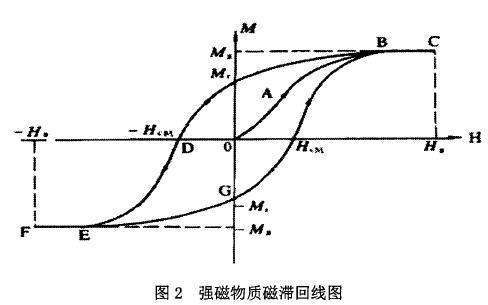 磁開關(guān)內(nèi)部裝有鐵質(zhì)的彈性簧片,在低頻磁場中,鐵質(zhì)簧片被磁化,從而使彈性簧片吸合導(dǎo)通,而油位計(jì)內(nèi)部磁翻板未達(dá)到磁開關(guān)動作值的位置,所以監(jiān)控誤報(bào)油位異常信號。當(dāng)機(jī)組停機(jī)時(shí),勵磁電纜中電流消失,但此時(shí)磁開關(guān)誤動作信號并未復(fù)歸,下面將通過磁滯回線的概念來解釋此現(xiàn)象。