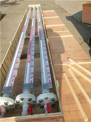 液位計根據浮力原理,浮子在測量管內隨液位的升降而上下移動,浮子內的永久磁鋼通過磁耦合作用,驅動紅、白色翻柱翻轉180’液位上升時,翻柱由白色轉為紅色,下降時,翻柱由紅色轉為白色,從而實現液位的指示。