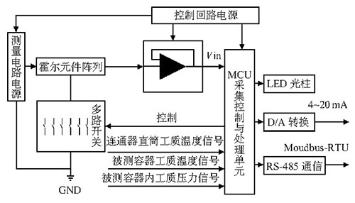 同一時刻僅使一只霍爾開關(guān)處于工作狀態(tài),降低了功耗,避免了虛假液位。