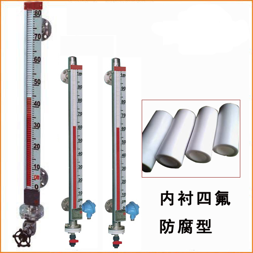 不銹鋼內襯防腐型磁翻板液位計采用不銹鋼本體內襯聚丙烯(PP)和聚四氟乙烯(PTFE)工藝,有很高的結構強度和耐腐蝕性,可適用于鹽酸等酸性液體、堿性液體和有機溶劑。但不適合濃縮硝酸、含氯溶劑、芳香劑、脂肪族等介質液體的測量。側裝式內襯防腐液位計有不銹鋼主體內襯聚四氟乙烯(PTFE)和不銹鋼內襯聚丙烯(PP)兩種,適合腐蝕性介質的測量。