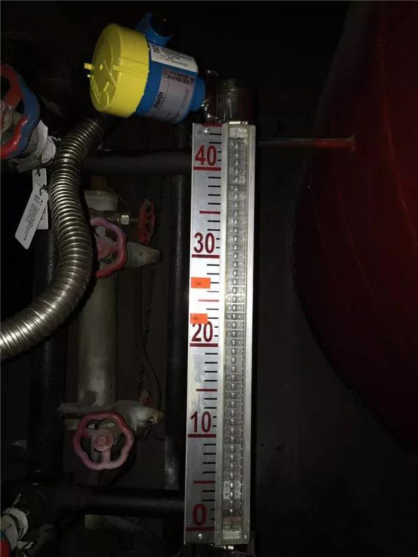 1、儀表遠端控制室始終顯示同一個液位數字不變,現場就地指示翻旗也始終穩定在同一高度。出現這種現象的原因通常是由于儀表的主浮筒長時間沒有得到清洗,內壁與浮子表面附有臟物,浮子被卡住,不能隨液位的升降而上下浮動。解決的方法是及時拆卸儀表對其清理,并做好儀表保養計劃,做到定期清洗。