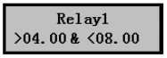 3) 按擊▼鍵可選擇其它繼電器,點OK鍵進入繼電器1設置界面,如右圖,界面中的公式表示繼電器1