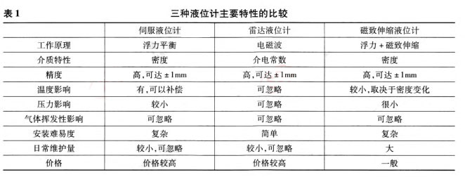 三種市場上常見液位計的主要特性如表1所示。