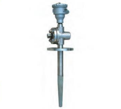 ②鎧裝熱電偶直徑d≤φ5mm,并裝有防濺式或防水式接線盒的產(chǎn)品,熱電偶露出設(shè)備部分。用戶在安裝時(shí)必須加裝支架等輔助支撐,增加其剛度,確保緊固,防止接線盒受振動(dòng)而引起搖擺,損壞熱電偶。